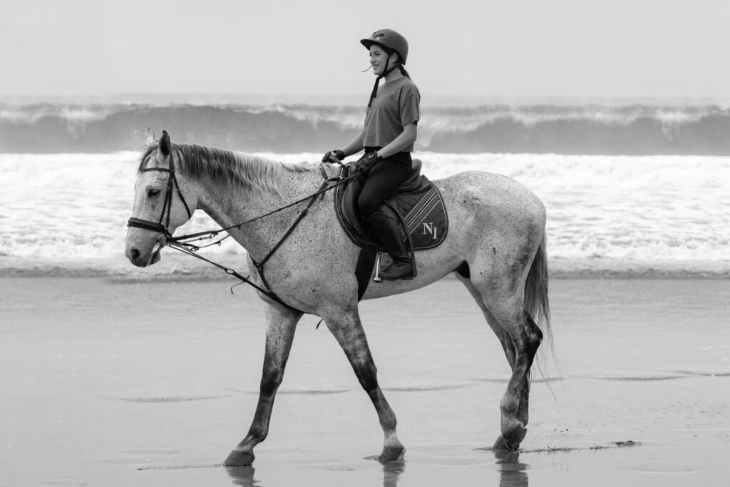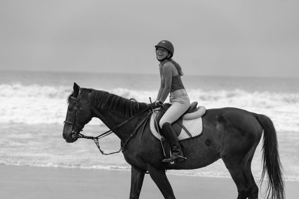 Ofrecemos cabalgatas en la playa con nuestros caballos, quienes están acostumbrados a entrar al agua y pasear por cualquier tipo de terreno. Será una experiencia inolvidable en un ambiente relajante y tranquilo en la naturaleza. Tendrás la opción de decidir entre aprender a montar con nosotros y culminar con una linda experiencia a caballo o únicamente alquilar uno de nuestros caballos y divertirte en la playa.